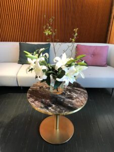 Inox Brass Low Simil Marble Top Grey